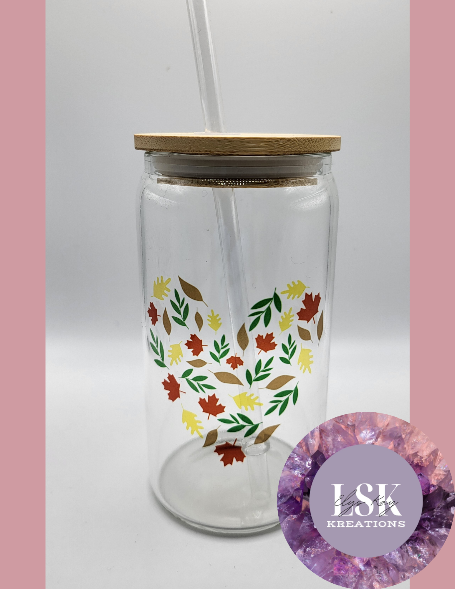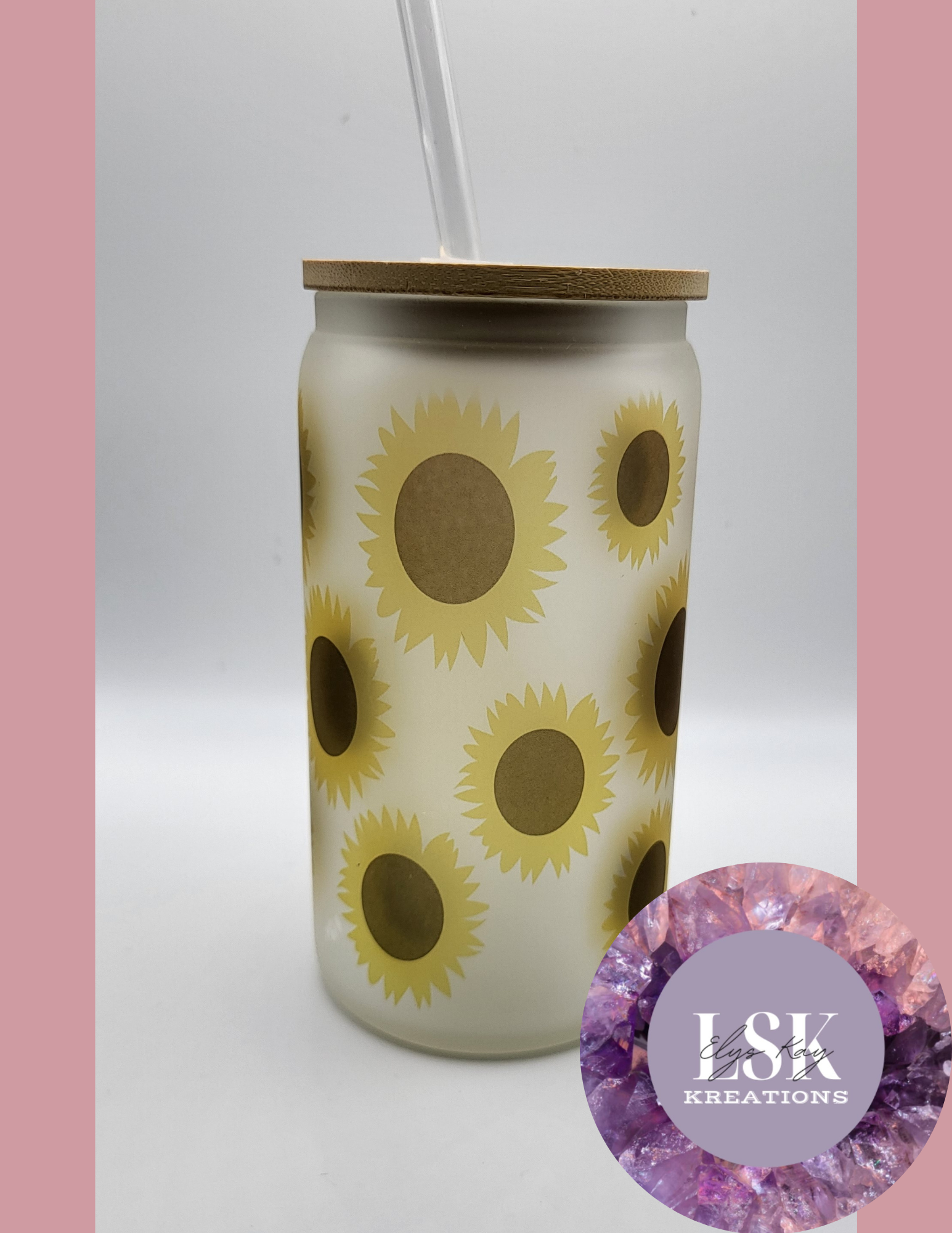 Sublimation clear and matte glass cans. Order in 12 oz., 16 oz, or both! Comes with a bamboo lid and reusable straw.